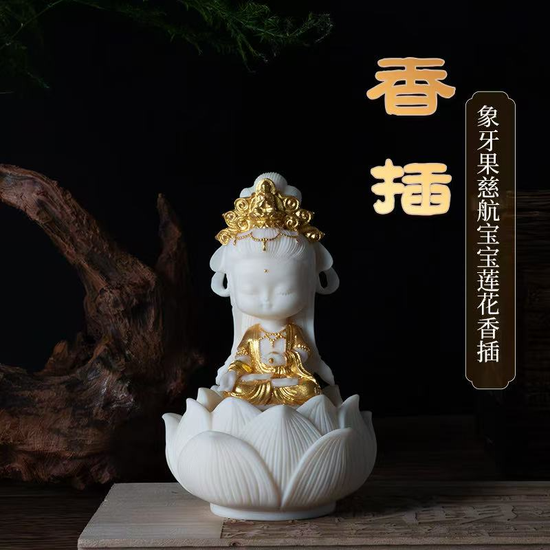 Ivory Fruit Cihang Baby Lotus Flower Incense Holder