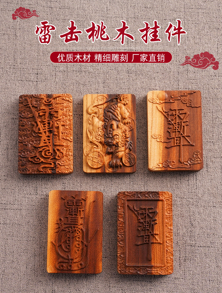 Natural lightning strike peach wood golden charm pendant with lightning marks, Ziwei taboo Taoist artifact token, safety pendant