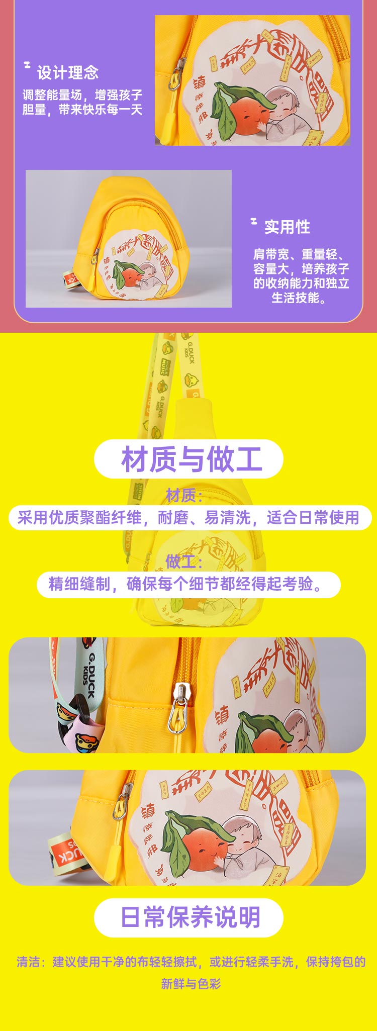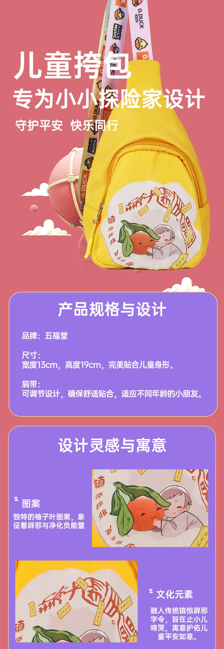 Taoist cultural and creative children's shoulder bag, safe every year, cute and playful, suitable for children aged 3-6, safe for travel