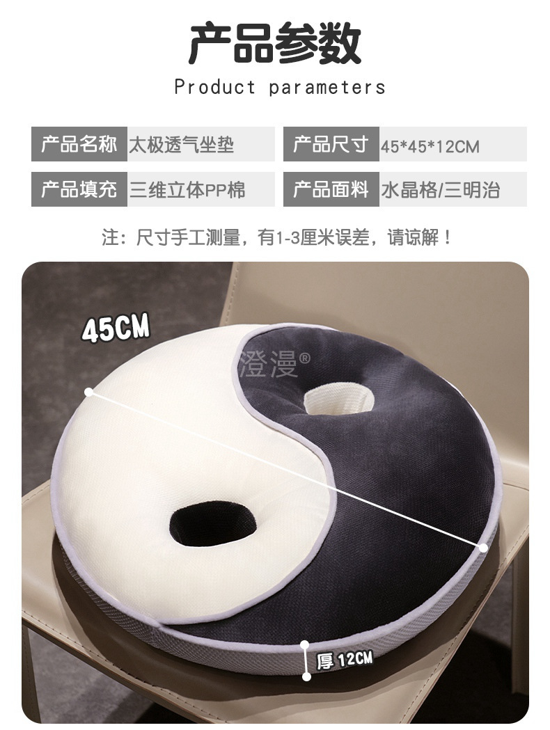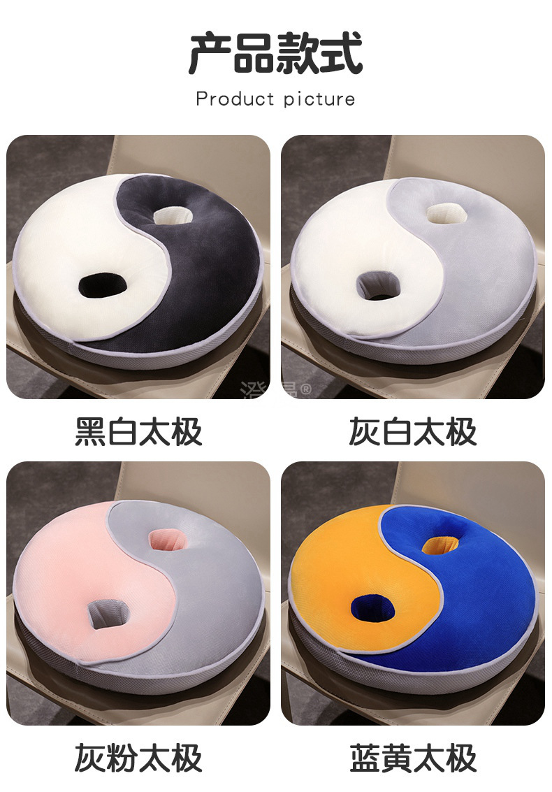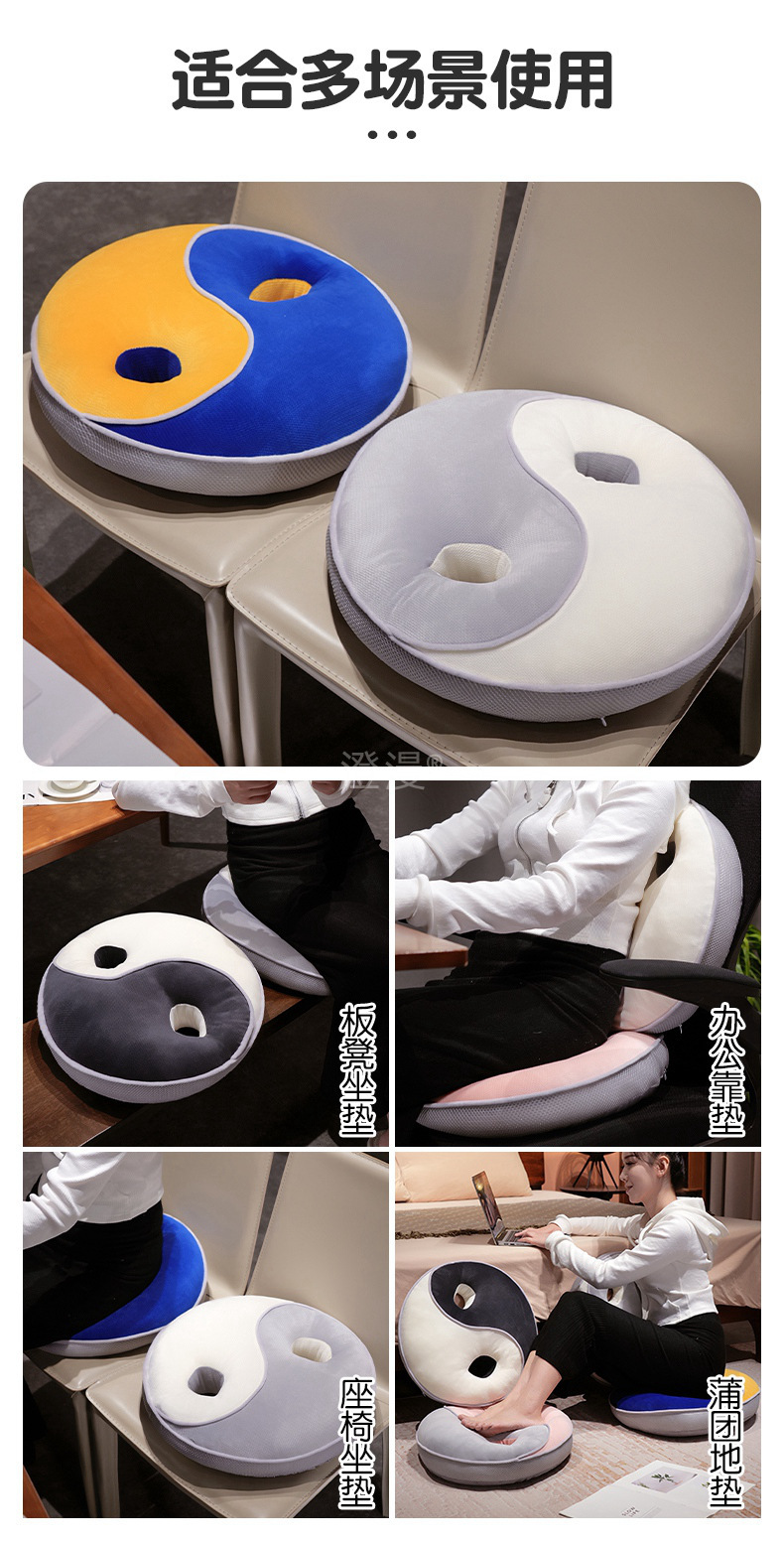 Tai Chi Beautiful Hip Cushion, Puff Butt Mat, Lazy Office Sitting, Waist Protection, No Fatigue, Home Beautiful Hip Black and White Style