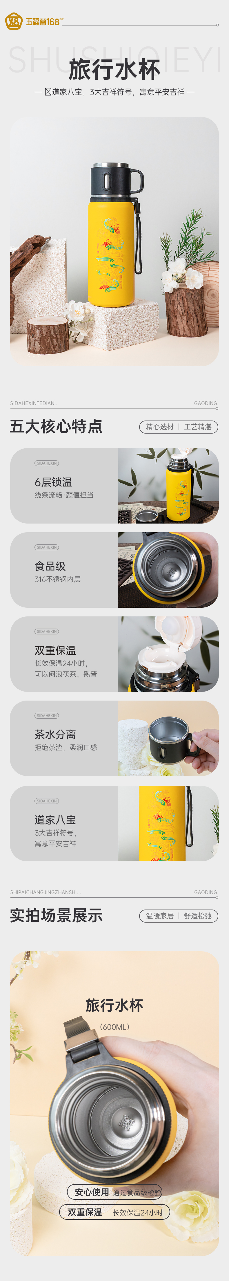 New Taoist cultural and creative travel thermos 600ml, large capacity water cup to carry with you