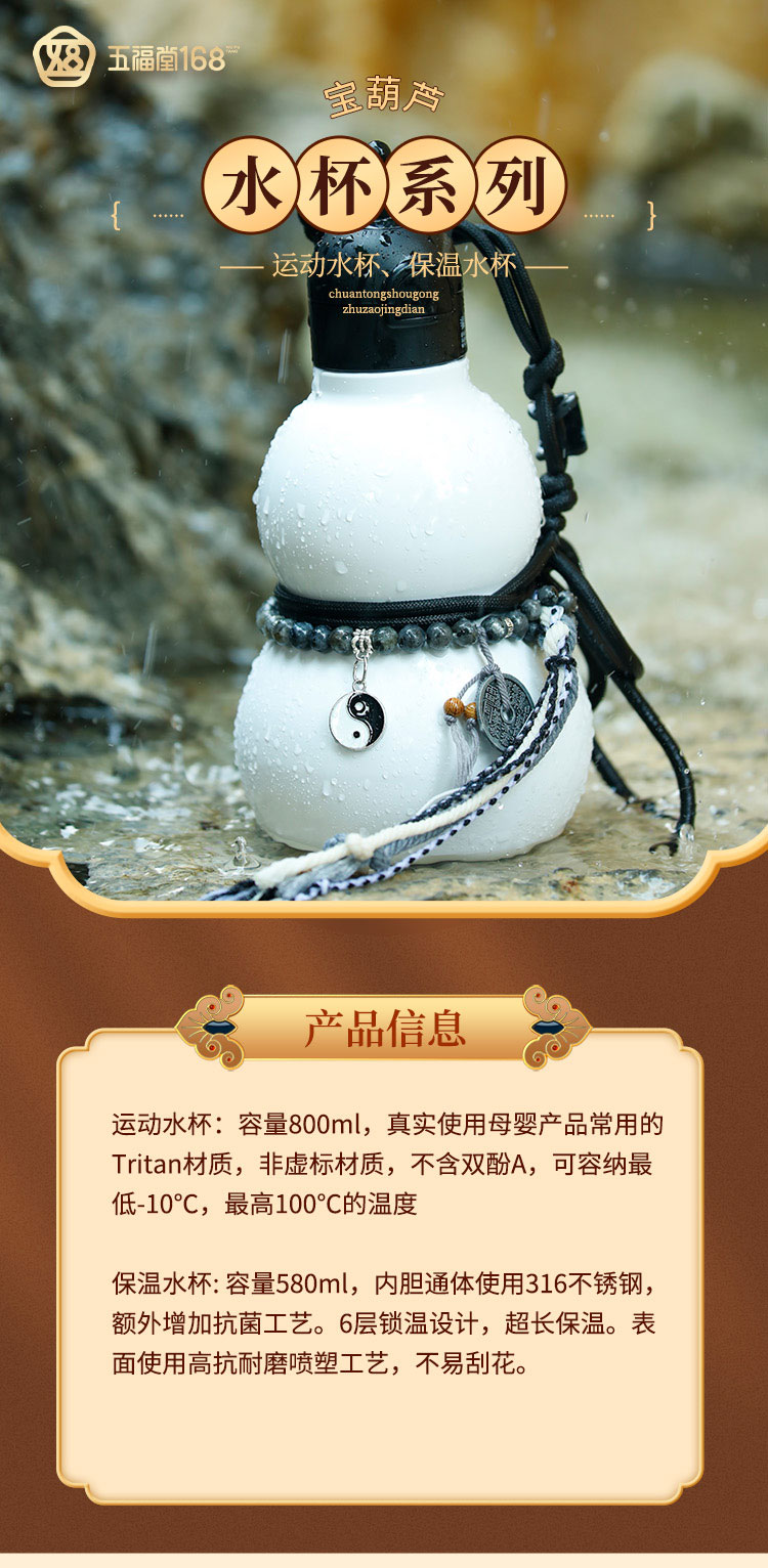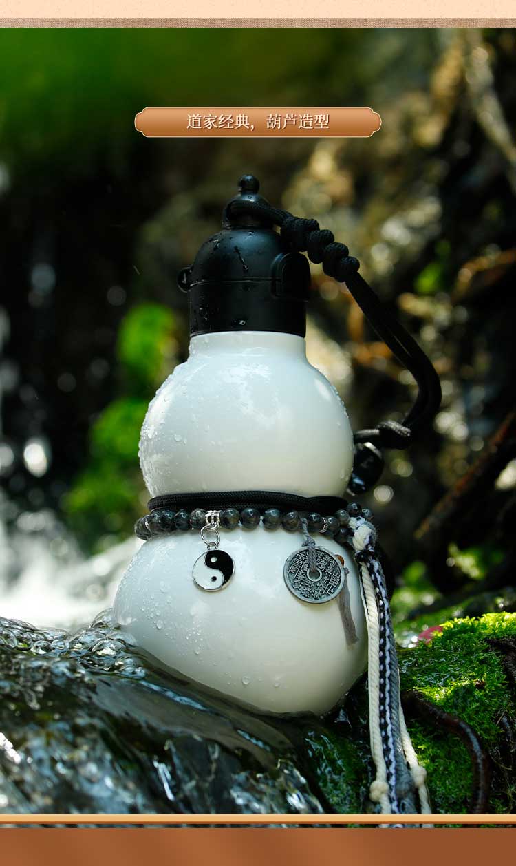 New Taoist cultural and creative classic design treasure gourd thermos cup, gourd shaped, black and white, stainless steel thermos cup, comes with accessory stickers
