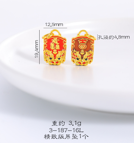 Sand Gold Auspicious Beast Shunsui Peaceful Tai Sui Guardian Amulet Necklace